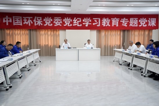 6月28日,中国环保党委书记、董事长周康以“自觉遵守和维护党的政治纪律和政治规矩进一步提高政治站位强化责任担当”为题讲授党纪学习教育专题党课。中国环保党委常委李豫军主持。