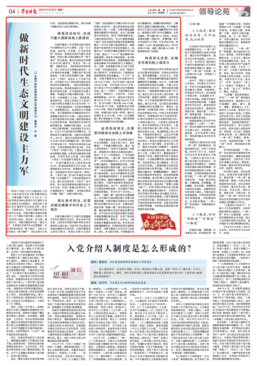 2月28日,《学习时报》刊发了集团公司党委书记、董事长宋鑫署名文章《做新时代生态文明建设主力军》。文章系统阐释了党的十八大以来,中国节能践行重大国家战略、落实碳达峰碳中和任务、聚焦环境综合治理、持续深化改革等方面的战略规划和具体实践。宋鑫表示,进入新时代,中国节能始终牢记“国之大者”,主动践行习近平生态文明思想,在担当尽责中捍卫“两个确立”,在壮大主业中践行“两个维护”,未来,将进一步发挥主力军作用,在推进碳达峰碳中和、建设美丽中国新征程上交出合格答卷。