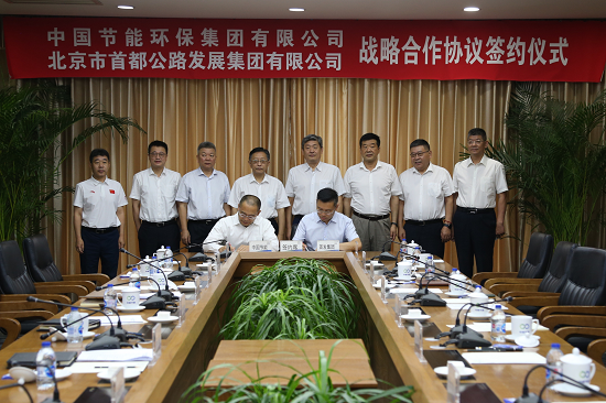 7月26日,中国节能与北京市首都公路发展集团有限公司在京签署战略合作协议。集团公司党委书记、董事长宋鑫,首发集团党委书记、董事长张闽出席并见签。集团公司党委常委、副总经理刘大军,首发集团总会计师齐占峰代表双方签约。