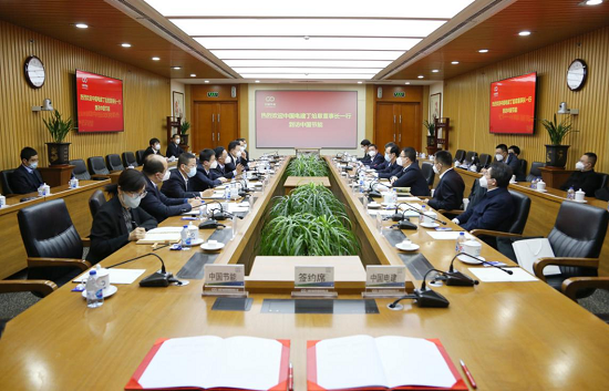 12月28日下午,中国节能与中国电力建设集团有限公司在北京签署战略合作框架协议。集团公司党委书记、董事长宋鑫,中国电建党委书记、董事长丁焰章出席仪式并见签。集团公司党委常委、副总经理曹华斌,中国电建党委常委、副总经理王小军代表双方签署协议。