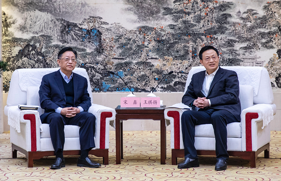 ▲中国节能党委书记、董事长宋鑫(左)与湖北省委常委、襄阳市委书记王祺扬(右)进行座谈
