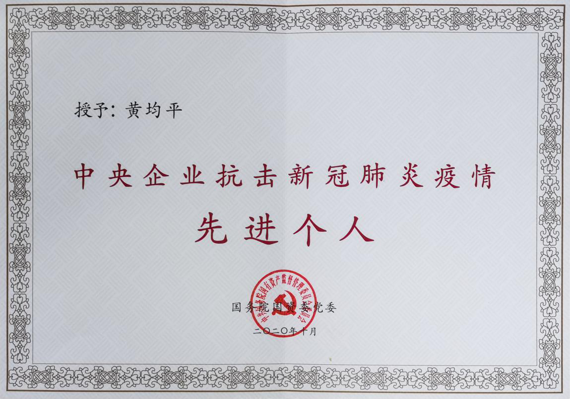 国资委副主任任洪斌宣读《国资委党委关于表彰中央企业抗击新冠肺炎疫情先进个人和先进集体的决定》《国资委党委关于表彰中央企业优秀共产党员和先进基层党组织的决定》。集团公司下属中国suncitygroup太阳vip club集团有限公司荣获先进集体,集团总部办公室刘志宏荣获先进个人,下属中节能(广西)清洁技术发展有限公司黄均平荣获先进个人及优秀共产党员并作为优秀共产党员代表上台领奖。