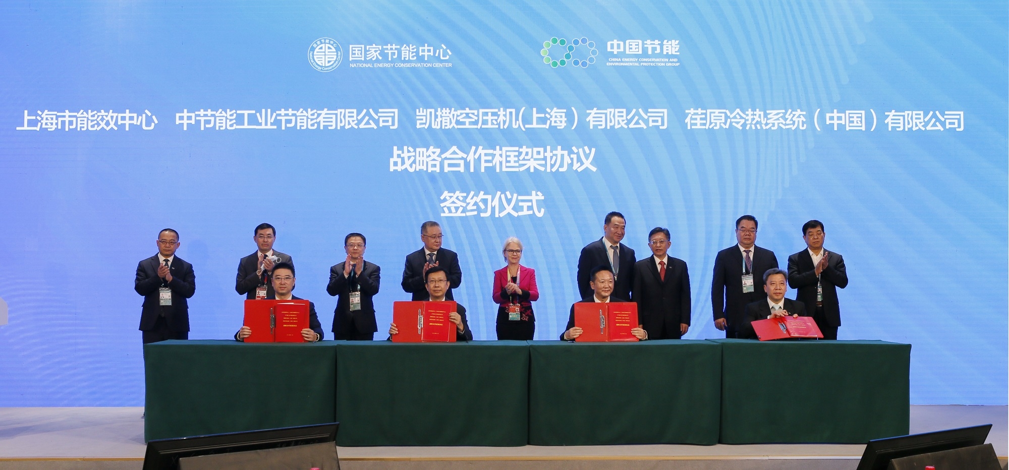 会上,中国节能与日本日挥控股株式会社签订战略合作协议,双方将在固废处理、基础设施建设等领域开展合作。上海市能效中心(上海市节能服务中心)与中节能工业节能公司、凯撒空压机(上海)公司、荏原冷热系统(中国)公司签署战略合作协议,四方将在工业互联网、智慧能源等领域开展合作。