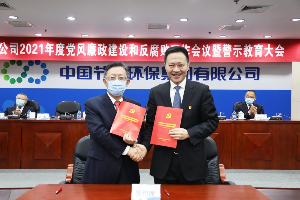 2月2日,中国节能环保集团有限公司党委召开2021年度党风廉政建设和反腐败工作会议暨警示教育大会。会议深入学习习近平总书记重要讲话精神,全面贯彻落实十九届中央纪委五次全会和国资委党风廉政建设和反腐败工作会议暨警示教育大会会议部署,总结2020年集团公司党风廉政建设和反腐败工作,部署2021年重点任务,通报驻委纪检监察组和集团公司纪委查处的典型案例,开展警示教育。集团公司党委书记、董事长宋鑫在会上讲话,并与班子成员逐一签订党风廉政建设责任书。集团公司党委常委、纪委书记程永平以《知责于心担责于身履责于行 为集团“十四五”开好局起好步提供坚强纪律保障》为题作工作报告。集团公司党委副书记、总经理余红辉主持会议并传达十九届中央纪委五次全会、国资委党风廉政建设和反腐败工作会议暨警示教育大会精神。
