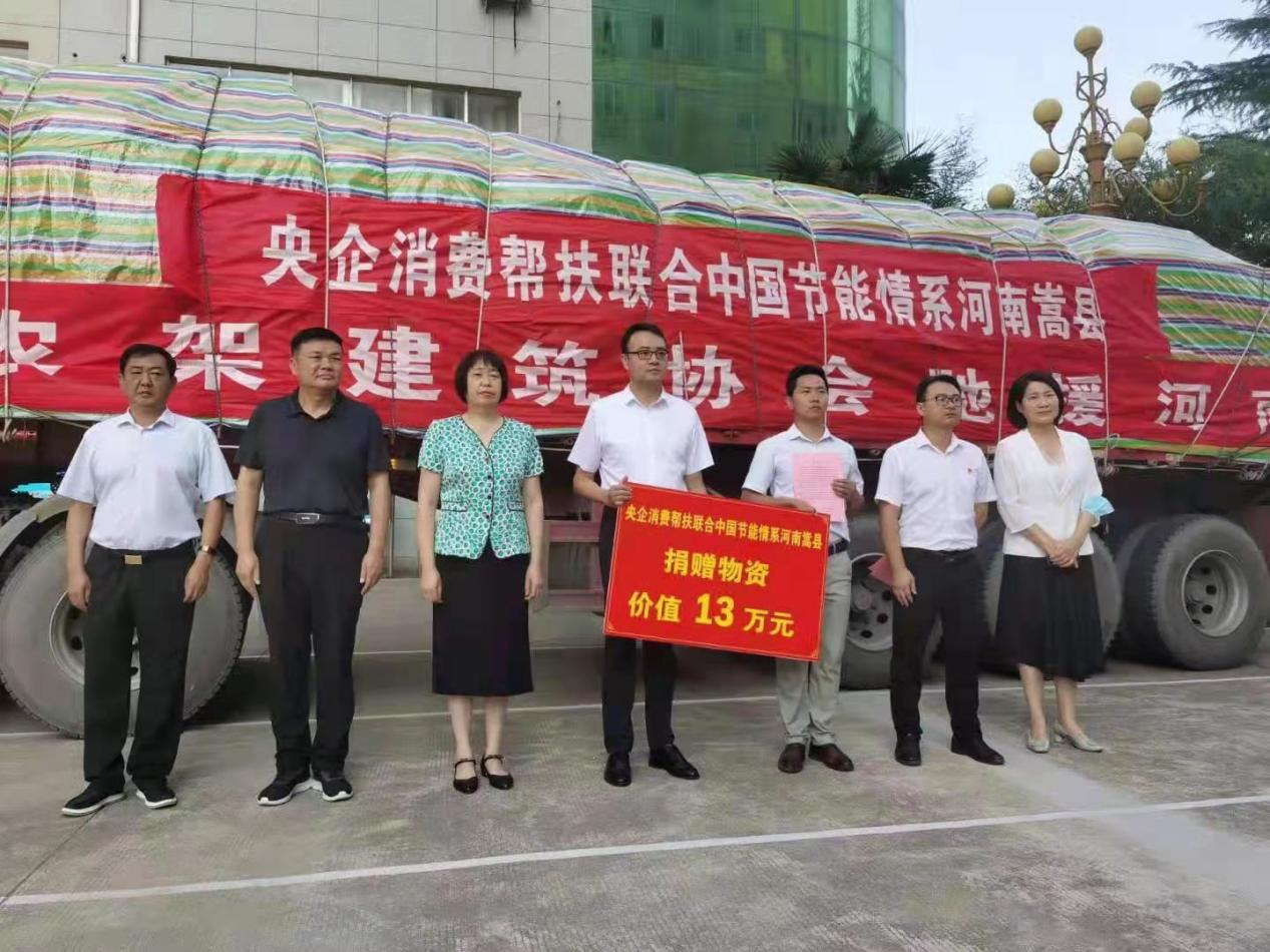 这是中国节能与央企消费帮扶平台通过全力合作,协调各方面资源,共同努力的结果。共筹集包括2万斤白菜、1万斤土豆、1000箱矿泉水、300箱方便面,总价值约13万元的物资,捐赠至集团定点帮扶县,以解决灾区人民的燃眉之急,助力河南嵩县人民抗击灾情。